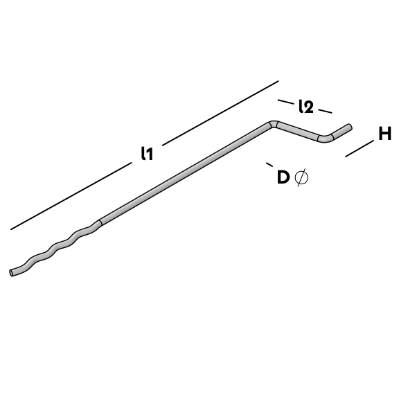 Ancrage à cavité qui est inséré dans le béton humide lors du coulage des murs intérieurs en béton préfabriqué. Sur le chantier, les ancrages à cavité sont placés bien droits et l'isolation peut être fixée par-dessus. L'extrémité ondulée est ensuite insérée dans le béton.