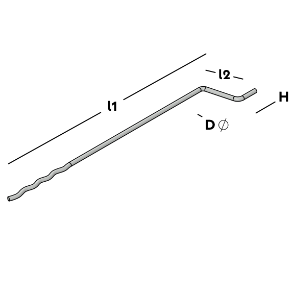Ancrage à cavité qui est inséré dans le béton humide lors du coulage des murs intérieurs en béton préfabriqué. Sur le chantier, les ancrages à cavité sont placés bien droits et l'isolation peut être fixée par-dessus. L'extrémité ondulée est ensuite insérée dans le béton.