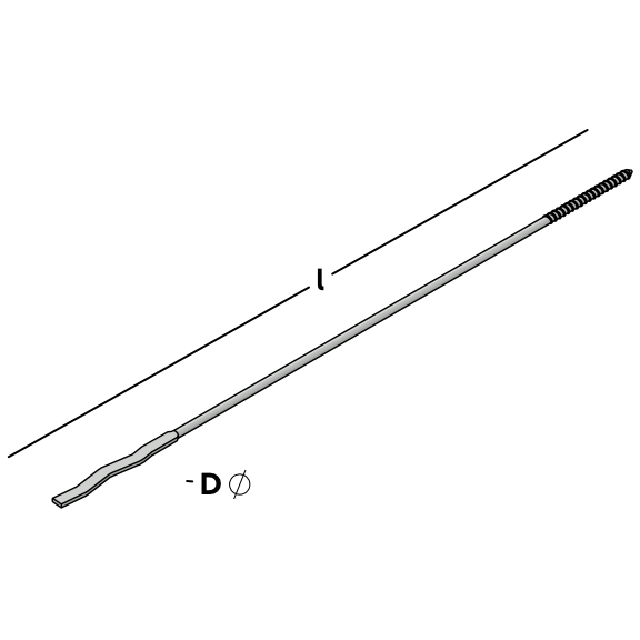 Ancrage à cavité avec fil de bois sur un côté. Applicable aux murs HSB ou en combinaison avec une cheville à collet, une cheville UNI-flex ou une cheville UNI-perfo pour le montage dans la brique silico-calcaire, le béton et la brique. L'autre extrémité présente un profil ondulé aplati qui convient au montage dans la brique silico-calcaire, le béton et la brique.