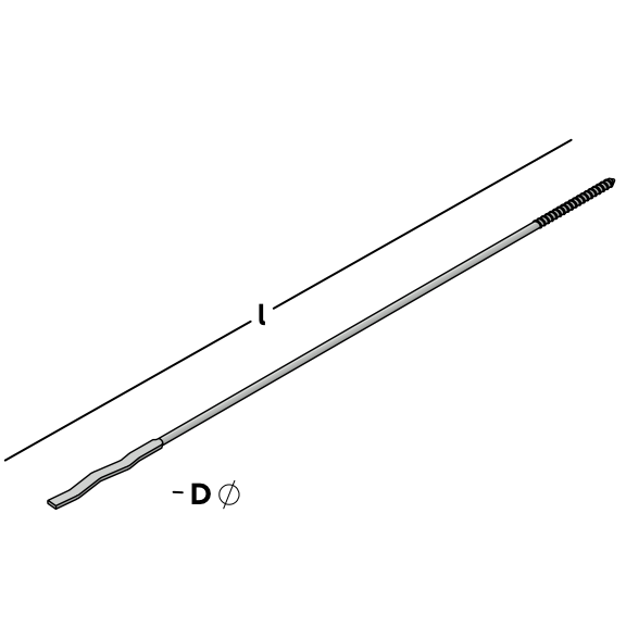 Ancrage à cavité avec fil de bois sur un côté. Applicable aux murs HSB ou en combinaison avec une cheville à collet, une cheville UNI-flex ou une cheville UNI-perfo pour le montage dans la brique silico-calcaire, le béton et la brique. L'autre extrémité présente un profil ondulé aplati qui convient au montage dans la brique silico-calcaire, le béton et la brique.