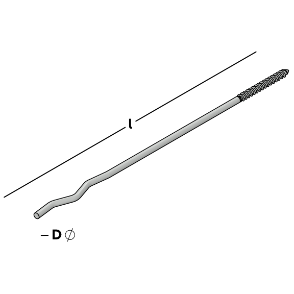 Ancre à cavité munie d'un filetage en bois avec pointe qui est vissée dans un mur intérieur à ossature en bois à l'aide d'une fixation à vis, après quoi l'extrémité ondulée est maçonnée dans le mur extérieur.