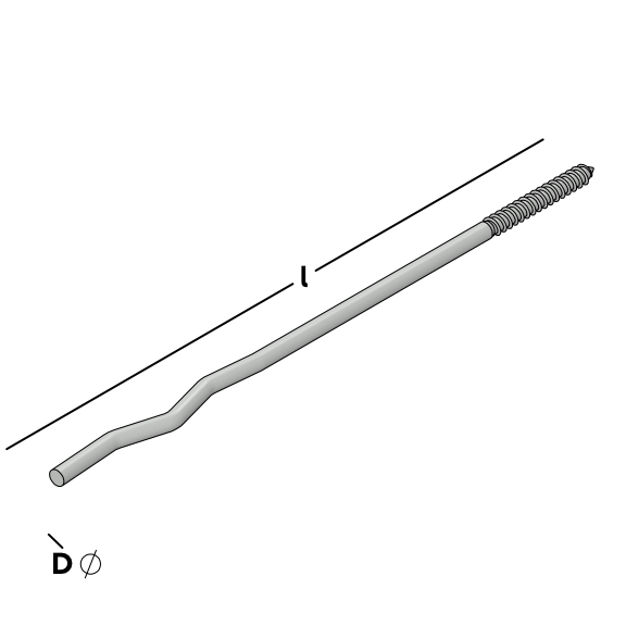 Ancre à cavité munie d'un filetage en bois avec pointe qui est vissée dans un mur intérieur à ossature en bois à l'aide d'une fixation à vis, après quoi l'extrémité ondulée est maçonnée dans le mur extérieur.