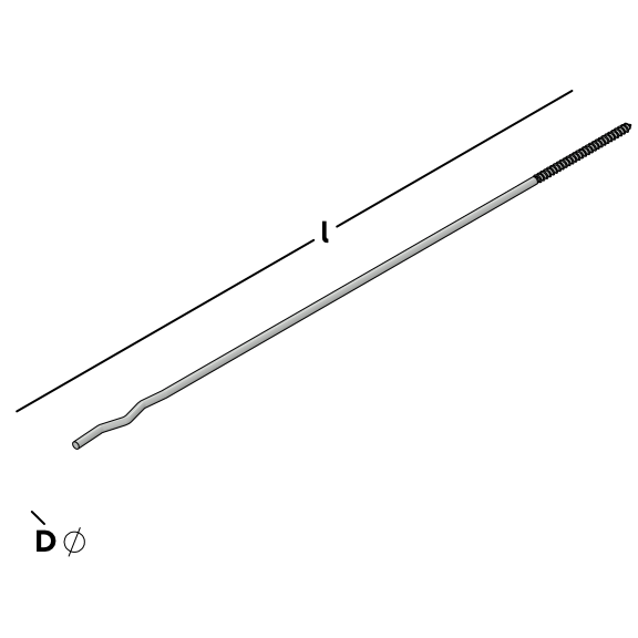 Ancre à cavité munie d'un filetage en bois avec pointe qui est vissée dans un mur intérieur à ossature en bois à l'aide d'une fixation à vis, après quoi l'extrémité ondulée est maçonnée dans le mur extérieur.