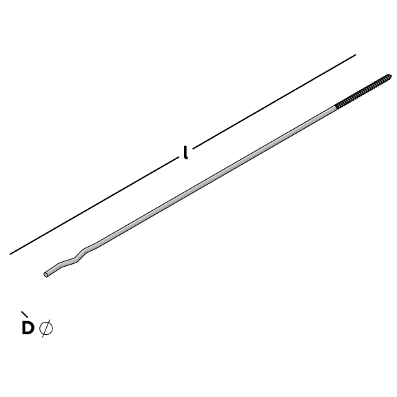 Ancre à cavité munie d'un filetage en bois avec pointe qui est vissée dans un mur intérieur à ossature en bois à l'aide d'une fixation à vis, après quoi l'extrémité ondulée est maçonnée dans le mur extérieur.