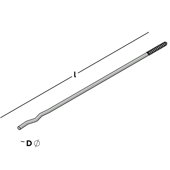 Ancre à cavité munie d'un filetage en bois avec pointe qui est vissée dans un mur intérieur à ossature en bois à l'aide d'une fixation à vis, après quoi l'extrémité ondulée est maçonnée dans le mur extérieur.