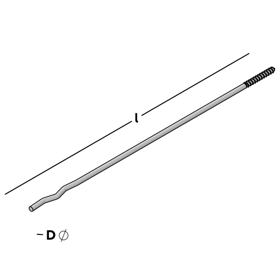 Ancre à cavité munie d'un filetage en bois avec pointe qui est vissée dans un mur intérieur à ossature en bois à l'aide d'une fixation à vis, après quoi l'extrémité ondulée est maçonnée dans le mur extérieur.