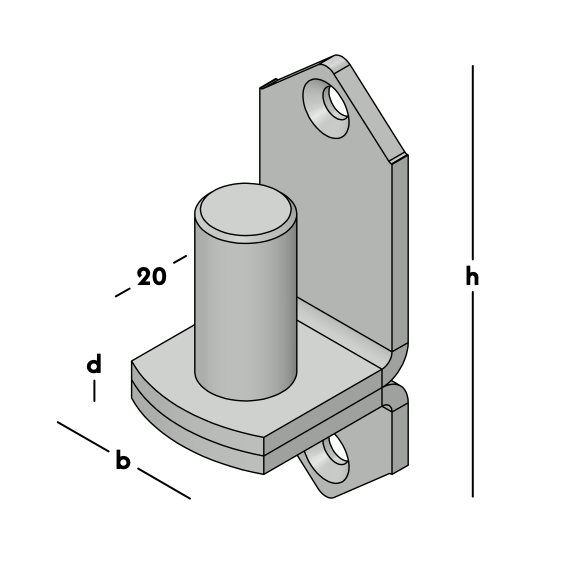 Goupille Ø 18mm équipée d'une plaque de fond avec des trous de fixation. À utiliser en combinaison avec un levier de pouce.