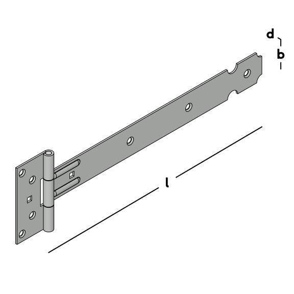 Charnière avec un battant allongé d'un côté. Convient pour les portails, les volets et les portes.