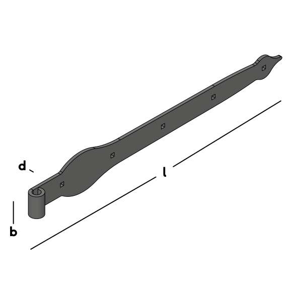 Poignée de conception classique pour la fixation à charnière des portails et des portes. Équipée de trous carrés (boulons de serrage). À utiliser en combinaison avec un pouce Ø16mm.