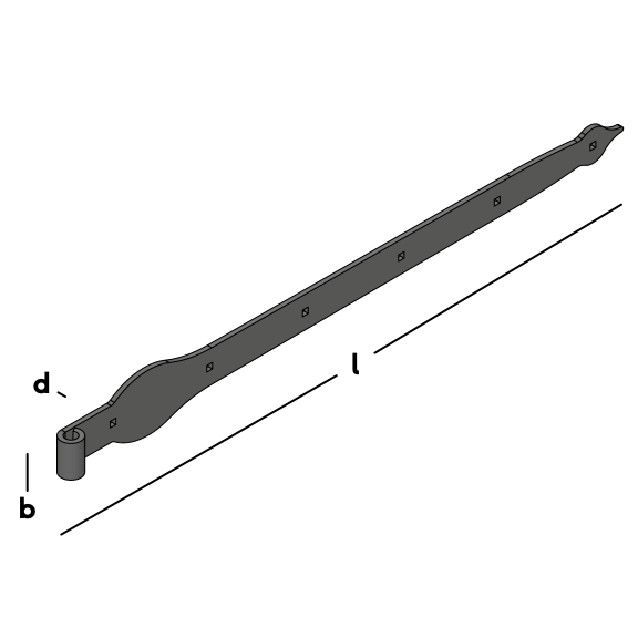 Poignée de conception classique pour la fixation à charnière des portails et des portes. Équipée de trous carrés (boulons de serrage). À utiliser en combinaison avec un pouce Ø16mm.