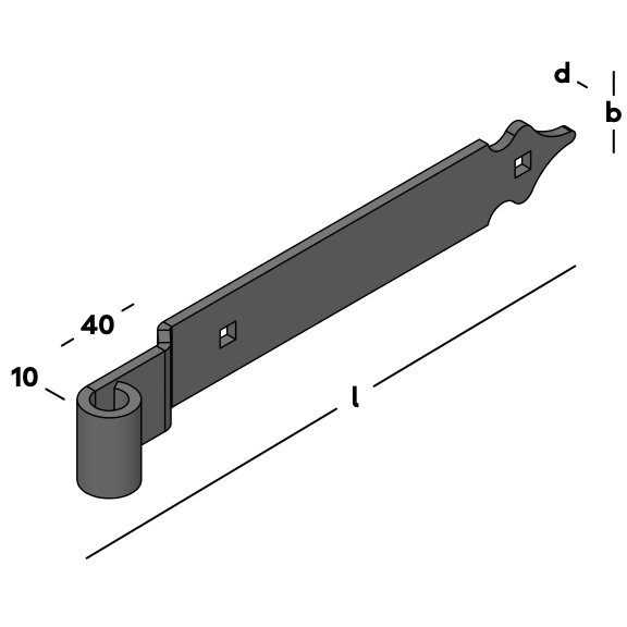 Baguette au design rustique pour la fixation des portes et portails sur charnières. Équipée de trous carrés (boulons de serrage) et d'un décalage pour le montage en surface. Le décalage de la poignée est égal à l'épaisseur du pouce (qui chevauche), de sorte que la porte soit au même niveau que le cadre.