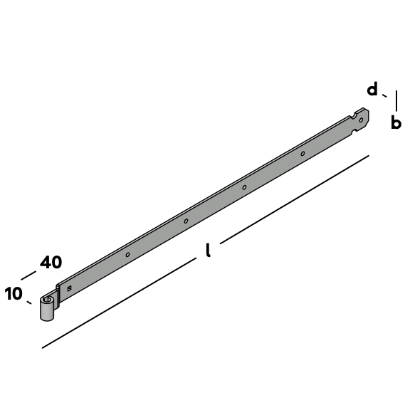 Baguette avec décalage pour le montage sur charnière de portails et de portes. Le décalage de la baguette correspond à l'épaisseur du pouce (qui la chevauche), de sorte que la porte puisse être suspendue au niveau du montant. À utiliser en combinaison avec un pouce Ø 16mm.