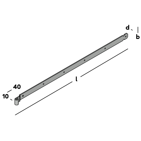 Baguette avec décalage pour le montage sur charnière de portails et de portes. Le décalage de la baguette correspond à l'épaisseur du pouce (qui la chevauche), de sorte que la porte puisse être suspendue au niveau du montant. À utiliser en combinaison avec un pouce Ø 16mm.