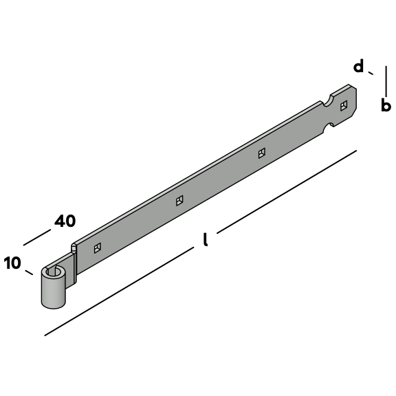 Baguette avec décalage pour le montage sur charnière de portails et de portes. Le décalage de la baguette correspond à l'épaisseur du pouce (qui la chevauche), de sorte que la porte puisse être suspendue au niveau du montant. À utiliser en combinaison avec un pouce Ø 16mm.