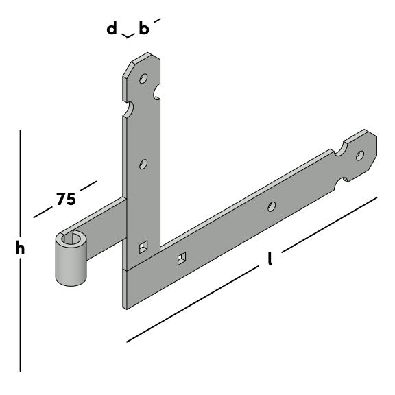 Baguette avec battant en connexion d'angle. Pour la fixation sur charnière des portes et portails légers. Convient pour un montage en bas à gauche ou en haut à droite sur l'extérieur d'un portail ou d'une porte tournant vers l'extérieur. À utiliser en combinaison avec un pouce Ø 16