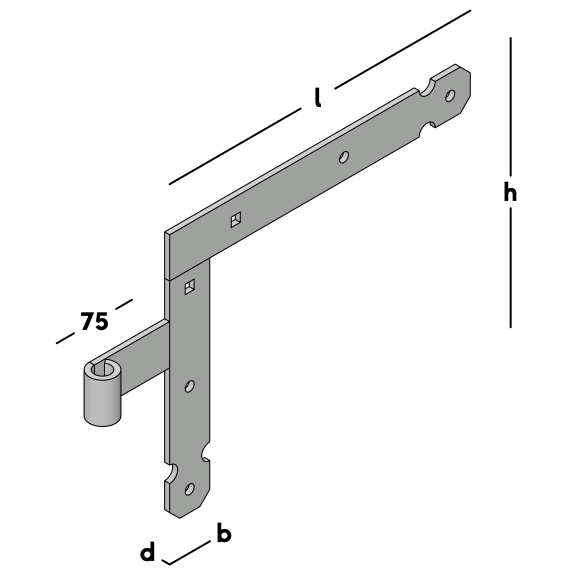 Baguette avec battant en connexion d'angle. Pour la fixation sur charnière des portes et portails légers. Convient pour un montage en haut à gauche ou en bas à droite sur l'extérieur d'un portail ou d'une porte tournant vers l'extérieur. À utiliser en combinaison avec un pouce Ø 16