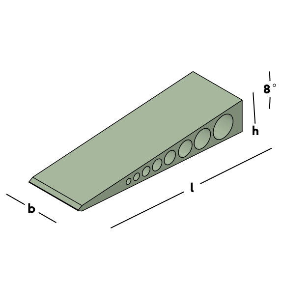 Cale en plastique pour tous les travaux de montage. Le coin a une surface nervurée pour une meilleure adhérence. Il est ainsi immédiatement possible d'utiliser plusieurs cales les unes sur les autres pour remplir des espaces plus importants. La pente est de 4°.