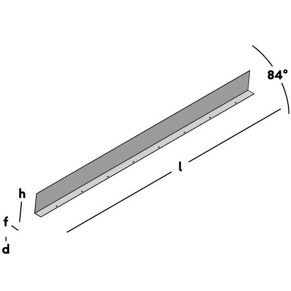 Caisson de bordure pour la construction d'un plancher coulé. La bride de ce caisson de bordure est uniquement fixée au sous-plancher, le renforcement n'est pas nécessaire. Le caisson de bordure est livré à 84° dans le crochet et se plie automatiquement à un angle de 90° lors du coulage sur le chantier sous la pression du béton.