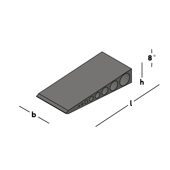 Cale en plastique pour tous les travaux de montage. Le coin a une surface nervurée pour une meilleure adhérence. Il est ainsi immédiatement possible d'utiliser plusieurs cales les unes sur les autres pour remplir des espaces plus importants. La pente est de 4°.