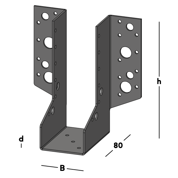 Porte-poutre avec rebords latéraux, pour fixer les solives contre un mur ou contre une autre poutre en bois. Ce support de poutre est également utilisé pour réaliser des ravalements dans les sols et les toits. Disponible pour les tailles de tête les plus courantes en acier et en acier inoxydable.
