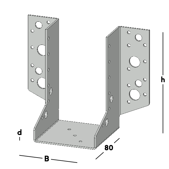 Porte-poutre avec rebords latéraux, pour fixer les solives contre un mur ou contre une autre poutre en bois. Ce support de poutre est également utilisé pour réaliser des ravalements dans les sols et les toits. Disponible pour les tailles de tête les plus courantes en acier et en acier inoxydable.