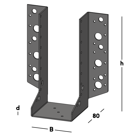 Porte-poutre avec rebords latéraux, pour fixer les solives contre un mur ou contre une autre poutre en bois. Ce support de poutre est également utilisé pour réaliser des ravalements dans les sols et les toits. Disponible pour les tailles de tête les plus courantes en acier et en acier inoxydable.