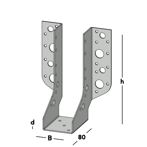 Porte-poutre avec rebords latéraux, pour fixer les solives contre un mur ou contre une autre poutre en bois. Disponible pour les têtes de bois rabotées les plus courantes.