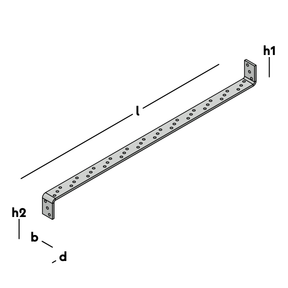 Verankeringsstrip met aan beide uiteinden een kort gezet deel. Bedoeld om trekkrachten van een houten muurplaat over te brengen op de hoofddraagconstructie.