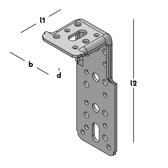 Zwaar hoekanker, extra versterkt met zijrillen. Uitgevoerd met een veelzijdig (slob)gatenpatroon. Uitermate geschikt voor de verankering van zware kozijnen.