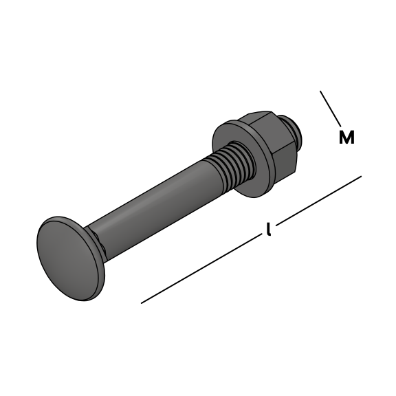 Slotbout inclusief sluitring en moer voor bevestiging van hengen met vierkante gaten.