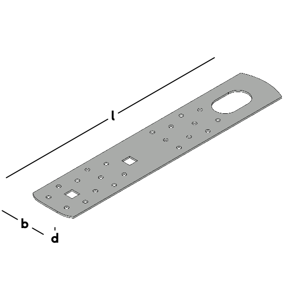 Metalen strip met een oog en schroefgaten, bedoeld als hijsvoorziening voor houten kozijnen, puien en elementen. Het hijsen dient plaats te vinden conform de richtlijnen van de SHR.