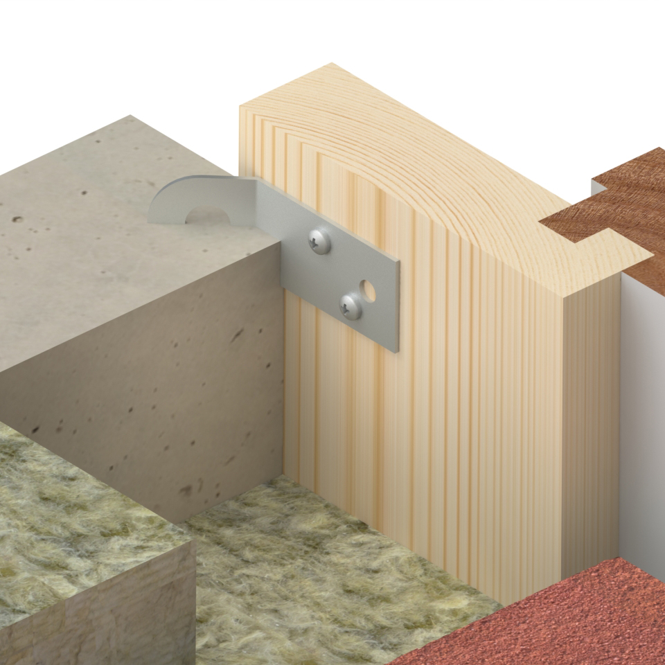 Hoekanker voor kozijnmontage in prefab betonbouw. Deze hoeken worden ingestort tijdens de productie van prefab wanden.