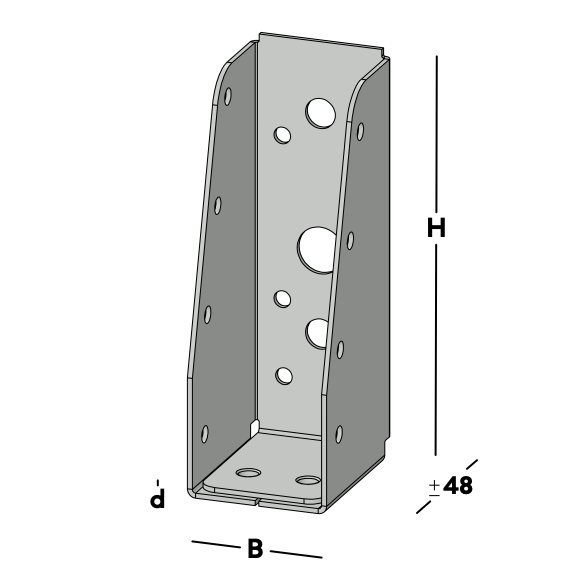 Balkdrager voor het verbinden van dwarsbalken rechtstreeks aan een muur. De balkdrager wordt via de gaten in de rug bevestigd. Hierna wordt een balk ingelegd die via de gaten in de zijkant van de balkdrager kan worden gefixeerd.