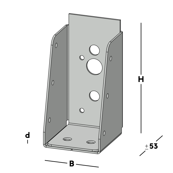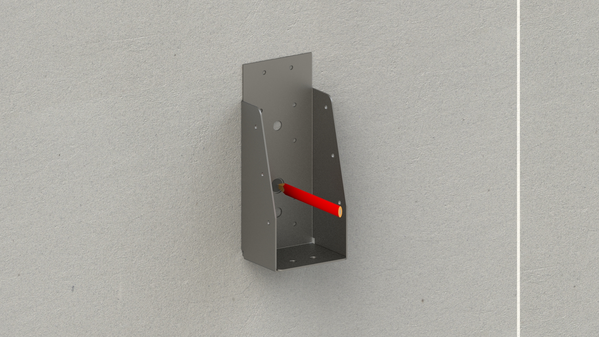 Balkdrager voor het verbinden van dwarsbalken rechtstreeks aan een muur. De balkdrager wordt via de gaten in de rug bevestigd. Hierna wordt een balk ingelegd die via de gaten in de zijkant van de balkdrager kan worden gefixeerd.