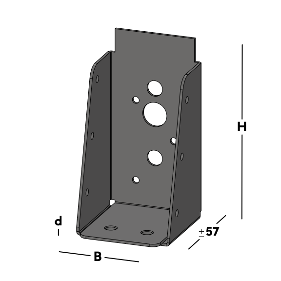 Balkdrager voor het verbinden van dwarsbalken rechtstreeks aan een muur. De balkdrager wordt via de gaten in de rug bevestigd. Hierna wordt een balk ingelegd die via de gaten in de zijkant van de balkdrager kan worden gefixeerd.