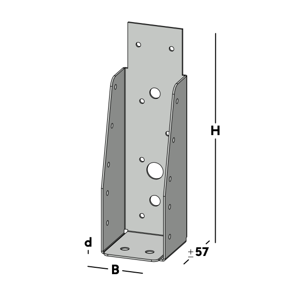 Balkdrager voor het verbinden van dwarsbalken rechtstreeks aan een muur. De balkdrager wordt via de gaten in de rug bevestigd. Hierna wordt een balk ingelegd die via de gaten in de zijkant van de balkdrager kan worden gefixeerd.