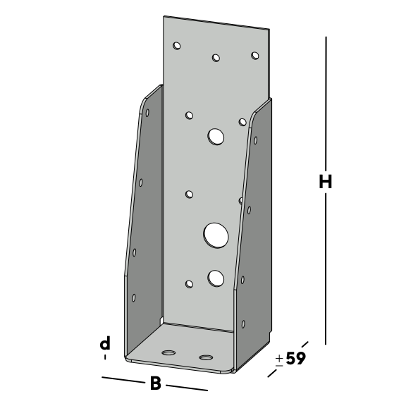 Balkdrager voor het verbinden van dwarsbalken rechtstreeks aan een muur. De balkdrager wordt via de gaten in de rug bevestigd. Hierna wordt een balk ingelegd die via de gaten in de zijkant van de balkdrager kan worden gefixeerd.