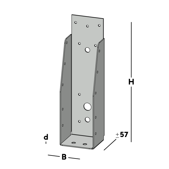 Balkdrager voor het verbinden van dwarsbalken rechtstreeks aan een muur. De balkdrager wordt via de gaten in de rug bevestigd. Hierna wordt een balk ingelegd die via de gaten in de zijkant van de balkdrager kan worden gefixeerd.