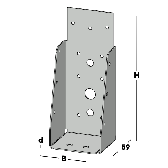 Balkdrager voor het verbinden van dwarsbalken rechtstreeks aan een muur. De balkdrager wordt via de gaten in de rug bevestigd. Hierna wordt een balk ingelegd die via de gaten in de zijkant van de balkdrager kan worden gefixeerd.