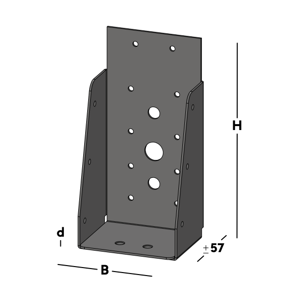 Balkdrager voor het verbinden van dwarsbalken rechtstreeks aan een muur. De balkdrager wordt via de gaten in de rug bevestigd. Hierna wordt een balk ingelegd die via de gaten in de zijkant van de balkdrager kan worden gefixeerd.