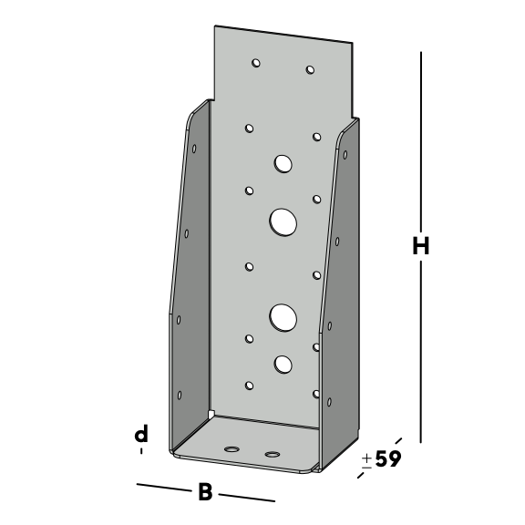 Balkdrager voor het verbinden van dwarsbalken rechtstreeks aan een muur. De balkdrager wordt via de gaten in de rug bevestigd. Hierna wordt een balk ingelegd die via de gaten in de zijkant van de balkdrager kan worden gefixeerd.