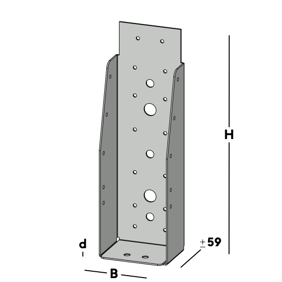 Balkdrager voor het verbinden van dwarsbalken rechtstreeks aan een muur. De balkdrager wordt via de gaten in de rug bevestigd. Hierna wordt een balk ingelegd die via de gaten in de zijkant van de balkdrager kan worden gefixeerd.