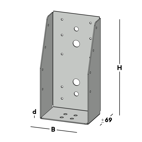 Balkdrager voor het verbinden van dwarsbalken rechtstreeks aan een muur. De balkdrager wordt via de gaten in de rug bevestigd. Hierna wordt een balk ingelegd die via de gaten in de zijkant van de balkdrager kan worden gefixeerd.