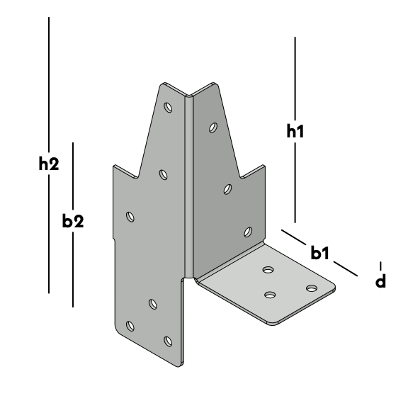 Hoekmontagebeugel voor het koppelen van lichte houtconstructies. Verkrijgbaar als universeel model (type C) en in vier verschillende hoekvarianten (type AL, AR, BL en BR). De 1e letter staat voor het type drager. Bij type A draagt de balk vanuit de binnenhoek, bij type B vanuit de buitenhoek en bij type C kies je voor een recht anker zonder dragende lip.