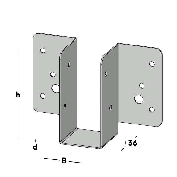 Lichte balkdrager om een houten regel dwars te verbinden met een muur, kantplank of (hoofd)balk. Leverbaar voor verschillende houtmaten.