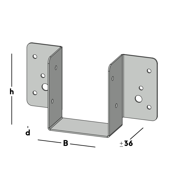 Lichte balkdrager om een houten regel dwars te verbinden met een muur, kantplank of (hoofd)balk. Leverbaar voor verschillende houtmaten.