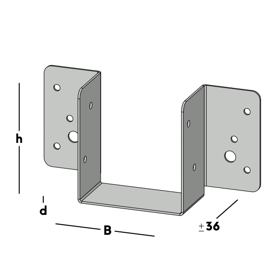 Lichte balkdrager om een houten regel dwars te verbinden met een muur, kantplank of (hoofd)balk. Leverbaar voor verschillende houtmaten.