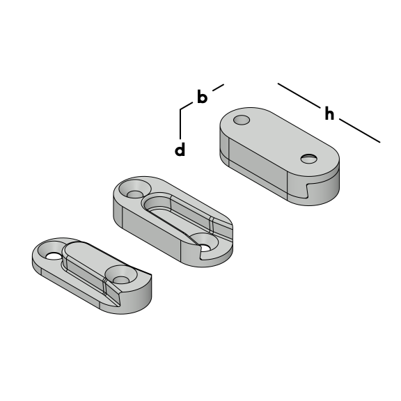 Tweedelige set gefreesde aluminium blokken welke in elkaar geschoven worden voor het maken van haakse houtverbindingen. Dit betreft een zgn. blinde verbinding omdat de bevestigingscomponenten na montage niet meer zichtbaar zijn. Het systeem ontleent zijn kracht aan de combinatie van de aluminium blokken in combinatie met bijhorende schroeven. Deze schroeven zijn apart verkrijgbaar.