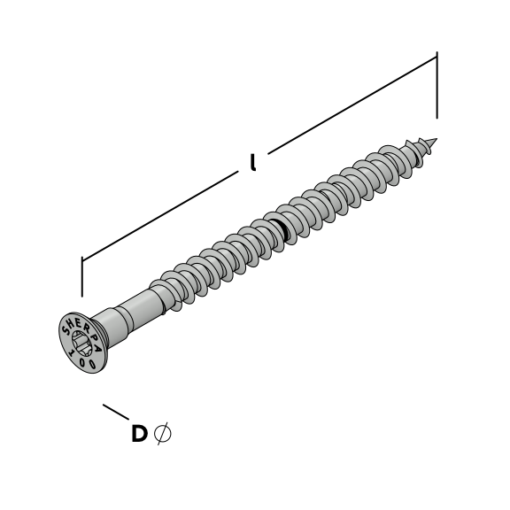Houtschroef met verzonken kop en torx indruk. Geschikt voor de toepasingen in combinatie met Sherpa (blinde) houtverbindingen.