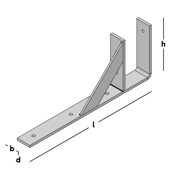 Gelast anker voor het monteren van de muurplaat aan de verdiepingsvloer ter plaatse van de dakvoet van een schuine kap. Extra versterkt met een schoor.